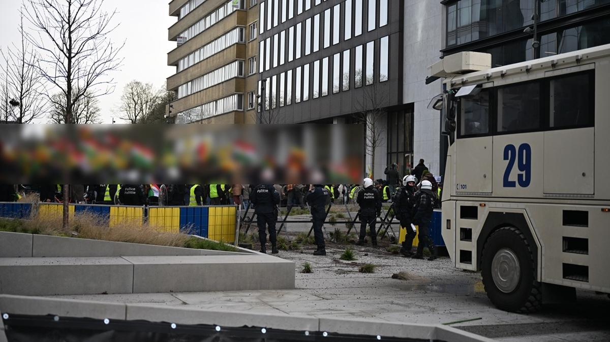 Terör örgütü yandaşı grup, sabah saatlerinde Avrupa Parlamentosu (AP) binası önünde toplandı.