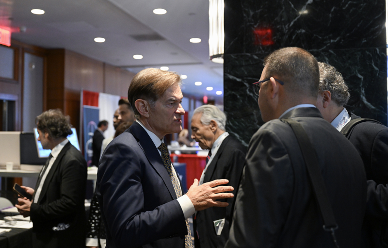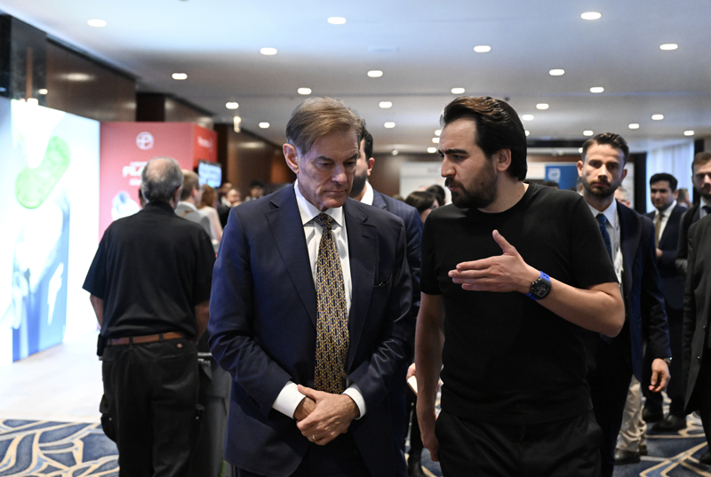 New York'ta, dünyanın en prestijli tıp organizasyonları arasında yer alan Veith Sempozyumu'nun yapıldığı otele gelen Öz, Türk sağlık firmalarının ürettiği cihazların da sergilendiği fuar alanını gezdi.