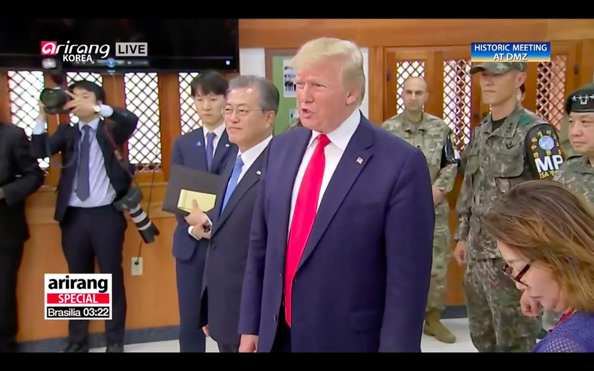 TSİ sabah saatlerinde Güney Kore lideri Moon Jae- in ile ortak basın toplantısından 'son dakika haberi' olarak duyurulduğu üzere Trump ve Kim sınırda Askerden Arındırılmış Bölge'de (DMZ) yer alan Panmunjom köyünde 'çok kısa bir görüşme' için bir araya gelecek.