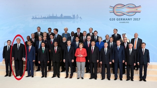ABD Başkanı Donald Trump'ın, Almanya'nın Hamburg kentinde düzenlenen G20 zirvesinde çekilen aile fotoğrafında en sol ve dışta kalması sosyal medyada gündem yarattı.