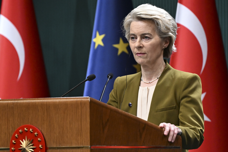 Von der Leyen, Cumhurbaşkanı Recep Tayyip Erdoğan ile Cumhurbaşkanlığı Külliyesi'nde düzenlenen ortak basın toplantısında konuştu.