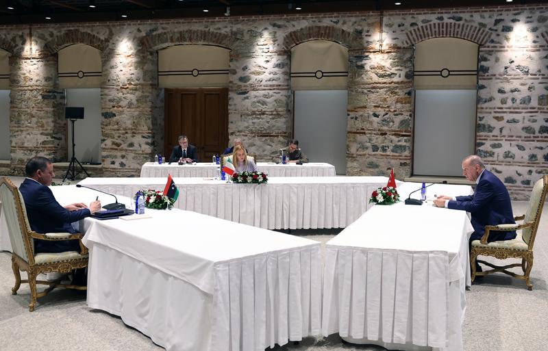 Cumhurbaşkanı Erdoğan, İtalya Başbakanı Meloni ve Libya Ulusal Birlik Hükümeti Başbakanı Dibeybe'yi Cumhurbaşkanlığı Dolmabahçe Çalışma Ofisi'nde ayrı ayrı resmi törenle karşılamıştı.