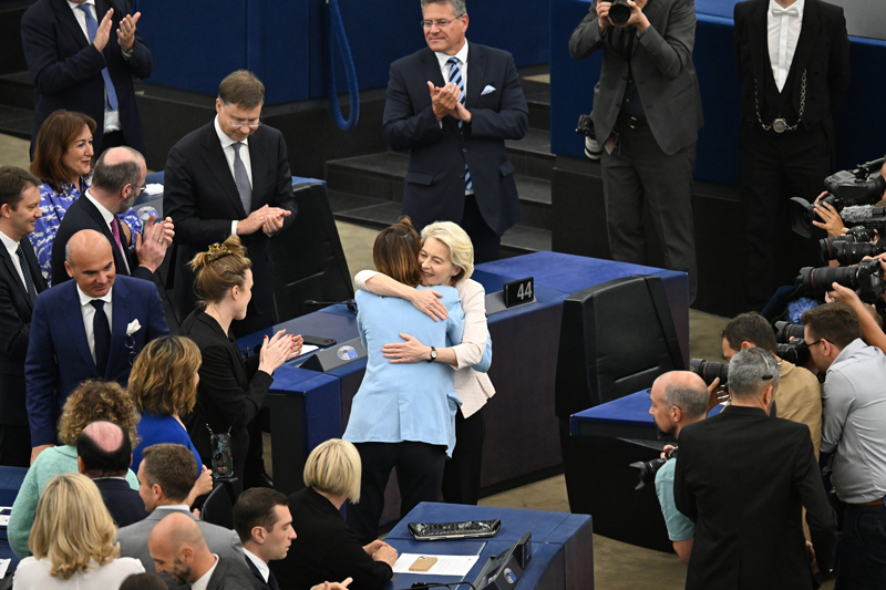 AP'nin en büyük grubu Avrupa Halk Partisi'nin (EPP) aday gösterdiği ve 6-9 Haziran'da yapılan seçimlerin ardından AB liderlerinin üzerinde uzlaşarak AP'ye önerdiği von der Leyen, Genel Kurul'da güvenoyu aldı.
