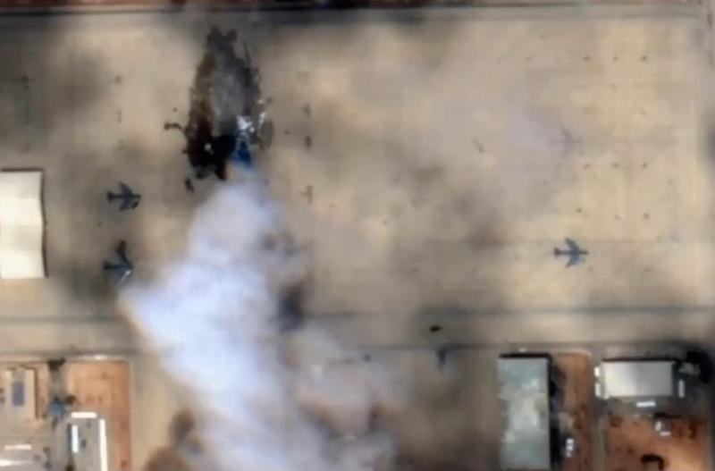 Üsteki sıralı uçakların ortasına İran füzesi! ABD'nin aldığı ağır hasar uydudan görüldü