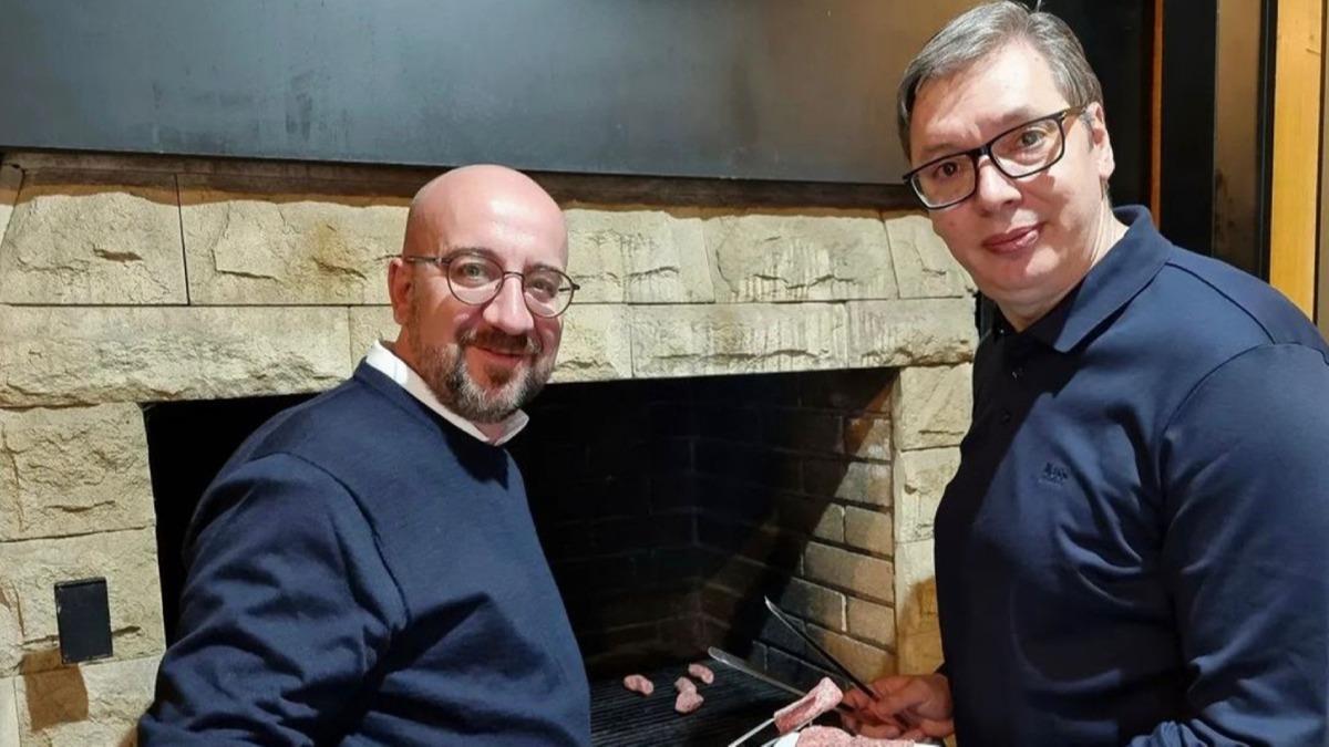 İkilinin mangal başında poz verdiği fotoğrafı Vucic, Instagram'dan, "Köfteleri birlikte hazırladık. Charles Michel'e ülkemize ziyareti ve Sırbistan'a Avrupa geleceğindeki desteği için teşekkür ederim." ifadesiyle paylaştı.