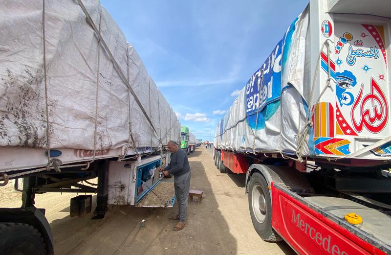 İsrail ile Hamas arasında varılan ateşkes anlaşmasının yürürlüğe girmesinin ardından, yardım tırları Mısır tarafındaki Refah Sınır Kapısı'ndan Gazze'ye giriş yapmaya başladı.