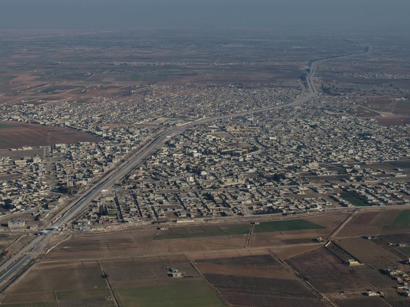 Anadolu Ajansı (AA), Suriye ordusunun askeri alan ilan ettiği terör örgütünün işgali altındaki Deyr Hafir beldesini havadan görüntüledi.