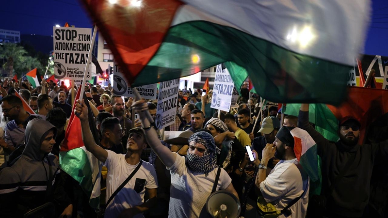 Yunanistan Hava Kuvvetlerine bağlı askeri havaalanının da bulunduğu Elefsina'da Yunanistan Komünist Partisi'nin (KKE) çağrısı ile toplanan eylemciler, ABD askeri uçaklarının konuşlandırılma planını ve İsrail'in Gazze'deki katliamlarını protesto ederek, "kendi devletlerini kurmak isteyen Filistin halkının Gazze'de katledilmesinin durdurulmasını" istedi.