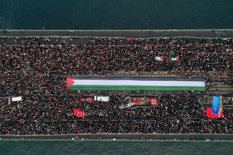 İstanbul'da Galata Köprüsü'nde düzenlenen "Şehitlerimize Rahmet, Filistin'e Destek, İsrail'e Lanet" yürüyüşü dünya basınında geniş yankı buldu. Ajanslar, on binlerce kişinin katıldığı tarihi yürüyüşten devasa kalabalığa ait görüntülere yer verdi. Programın, kalabalığın Ayasofya ve Sultanahmet Camii gibi İstanbul'un ikonik camilerinde sabah namazının kılınmasının ardından başladığı vurgulandı. Öte yandan dünyanın dört bir yanından sosyal medya kullanıcıları Galata Köprüsü'ndeki kalabalığın fotoğraflarını paylaştı.
