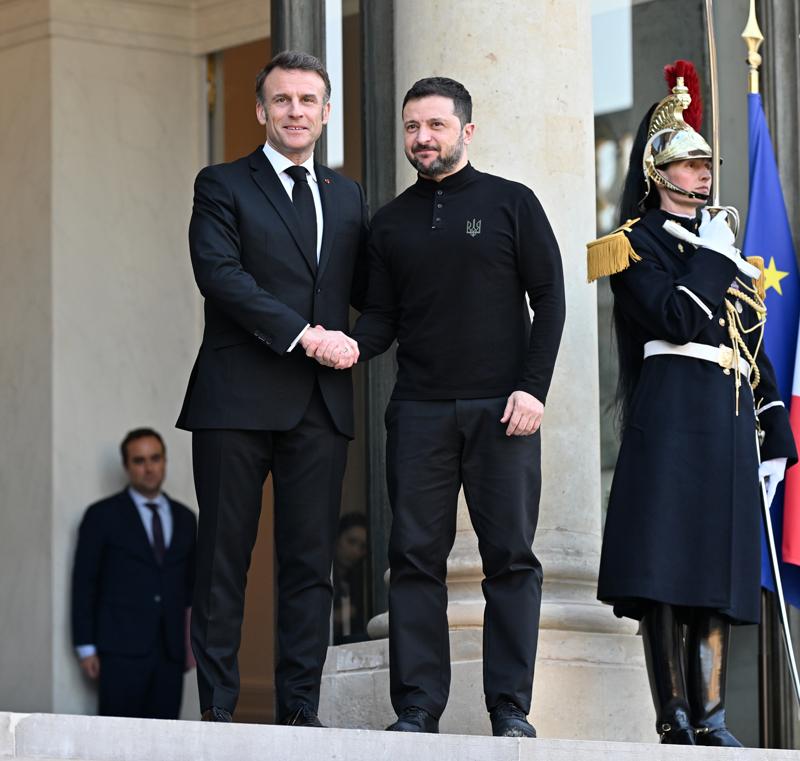 Zelenski, Fransa Cumhurbaşkanı Emmanuel Macron ile Paris'te Elysee Sarayı'nda düzenlediği ortak basın toplantısında konuştu.