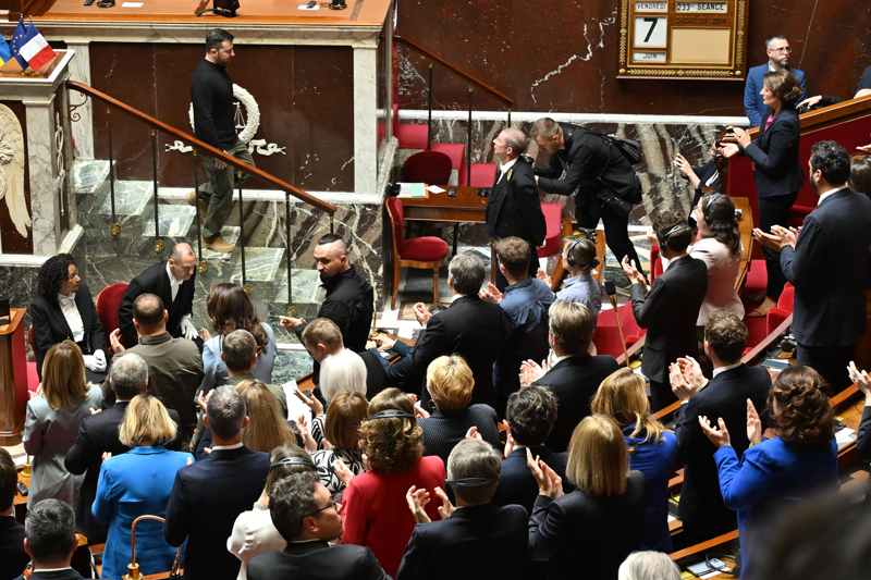 Meclis Başkanı Yaël Braun-Pivet tarafından karşılanan Ukraynalı lider, Fransa Başbakanı Gabriel Attal ve Dışişleri Bakanı Stephane Sejourne'nin de olduğu oturumda konuşması öncesi dakikalarca ayakta alkışlandı.