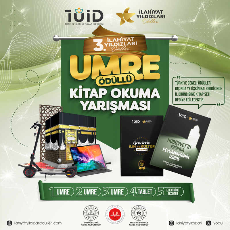 Türkiye İlahiyatlılar Derneği'nin düzenlediği İlahiyat Yıldızları Ödülleri, gençlerin dini bilgi ve kültürel birikimlerini artırmak amacıyla düzenlenen Kitap Okuma Yarışması ile bu yıl da devam ediyor. İlk ödüllerini Sn. Cumhurbaşkanı Recep Tayyip Erdoğan'nın takdim ettiği yarışma, bu yıl lise ve yetişkin kategorilerinde Türkiye genelindeki tüm gençlere hitap ediyor.