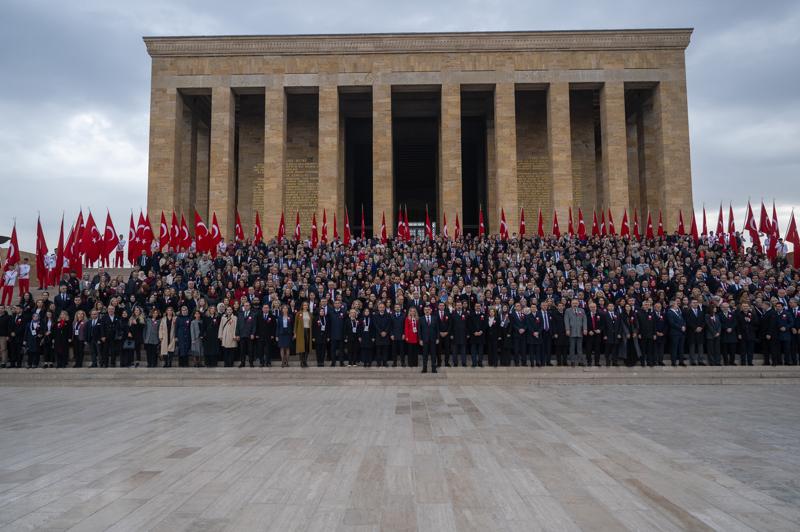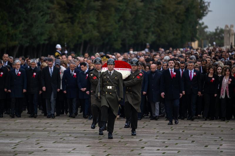 Tekin başkanlığındaki Bakanlık bürokratları ile öğretmenlerden oluşan heyet, Aslanlı Yol'dan yürüyerek Büyük Önder Gazi Mustafa Kemal Atatürk'ün mozolesine geldi.