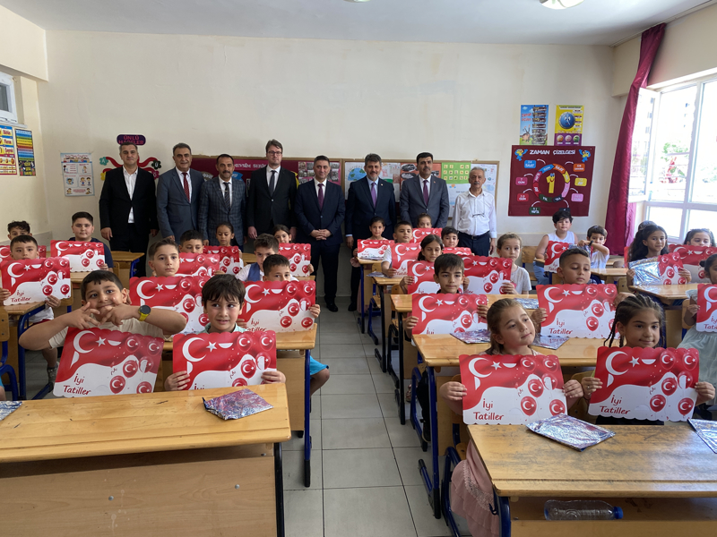 Karaköprü ilçesindeki Selahaddin Eyyubi İlkokulu'nda düzenlenen törende Vali Yardımcısı Yeliz Mercan ve İl Milli Eğitim Müdürü Asım Sultanoğlu öğrencilere karne dağıttı, tatilde okumaları için kitap hediye etti.