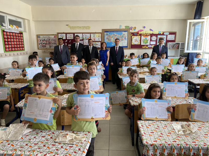 Vali Osman Varol, Şeref Cengiz İlkokulu'nda düzenlenen törende öğrencilere karnelerini dağıttı.