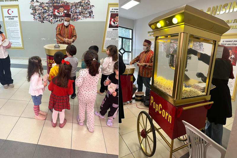 11 ayın sultanı olan ramazan ayının sevincini yaşayan öğrencilere tatlı, mısır, pamuk şeker ve çeşitli ikramlar dağıtıldı.