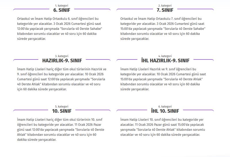 Çevrimiçi gerçekleştirilen yarışmaya 81 ilde tüm resmi ve özel ortaokullar ile İmam Hatip ortaokullarının 6. ve 7. Sınıf öğrencileri ile tüm resmi, özel liseler ve İmam Hatip Liseleri'nin hazırlık, 9. ve 10. Sınıf öğrencileri başvurabilecek.