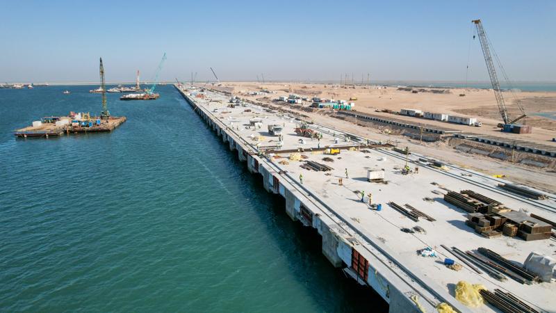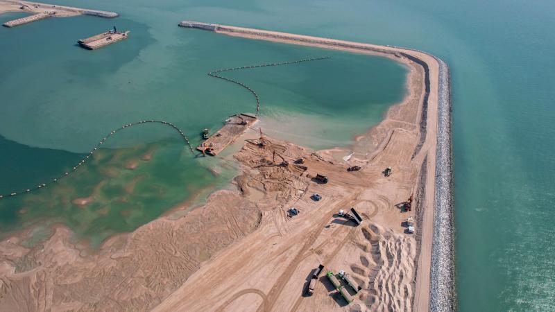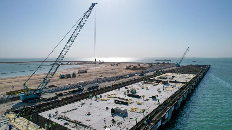 Ülkenin güneyindeki Basra'da bulunan ve tamamlandığında Orta Doğu'nun en büyük limanı olması beklenen Büyük Fav Limanı'nın inşa çalışmaları hummalı biçimde sürüyor.