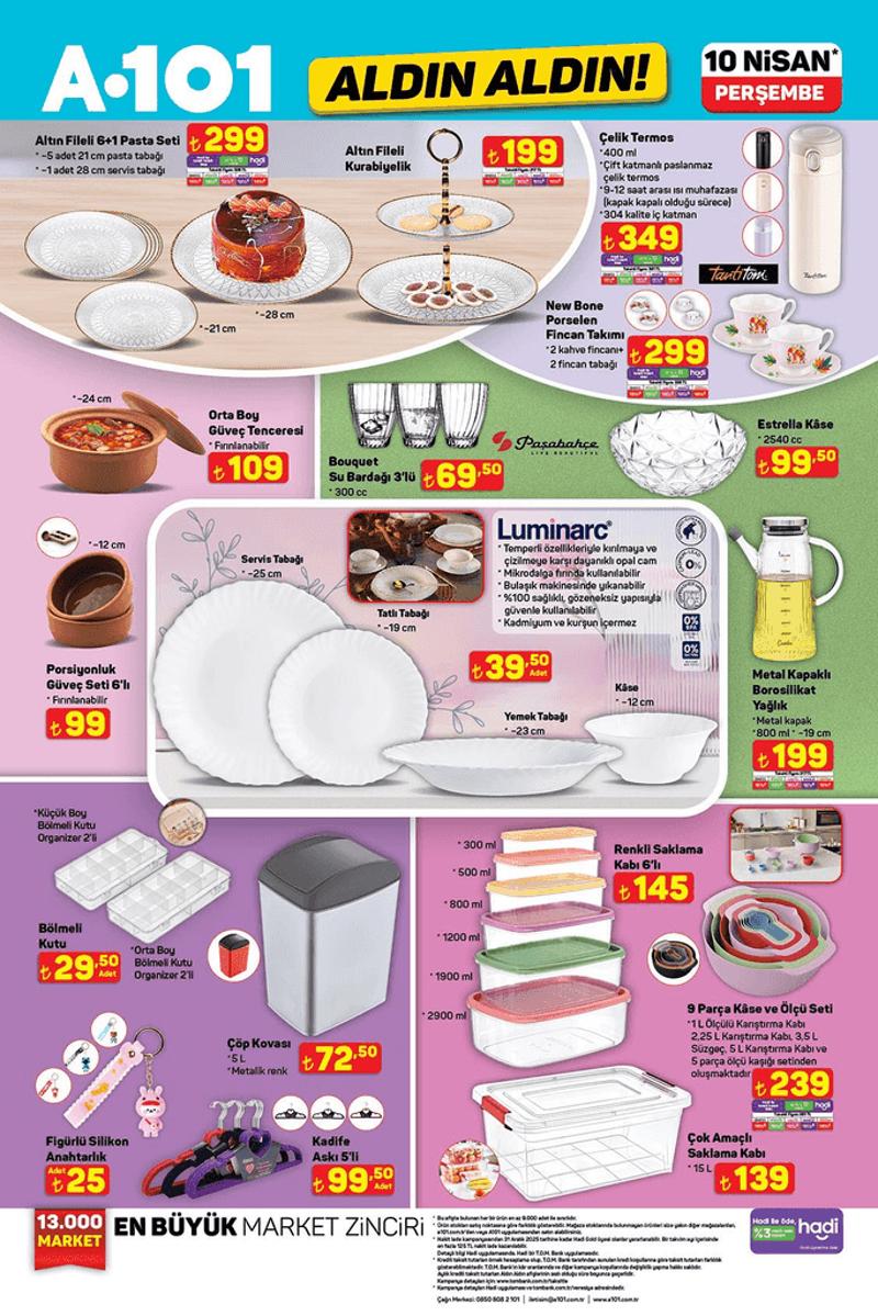 10 Nisan A101 kataloğu 2025 Züccaciye ve Mutfak grubunda yer alan fırsat ürünleri;