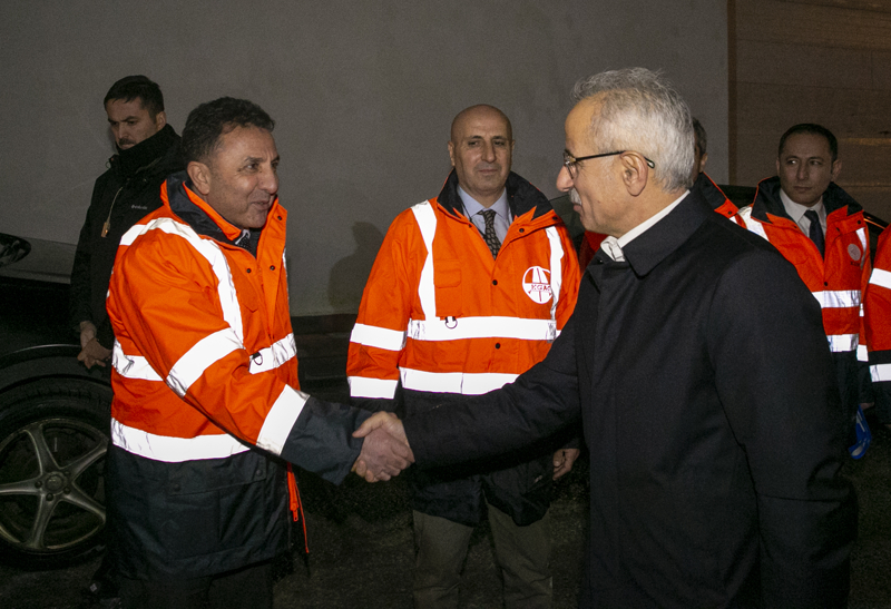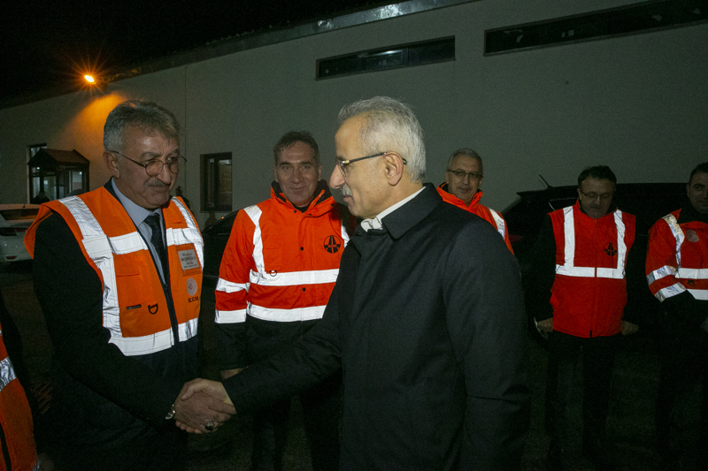 Bakan Uraloğlu, Karayolları Genel Müdürlüğü bünyesinde kurulan merkezde. güzergah analizi yapıldığını, karla mücadele çalışmaları, açılan-kapanan yollar ve anlık trafiğin monitörler üzerinden takip edildiğini bildirdi.