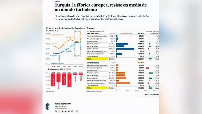 El Pais analizine göre Türkiye, sadece bir üretim üssü değil, aynı zamanda Avrupa'nın tedarik güvenliğinde stratejik bir ortak. Gazete, enerji krizleri ve tedarik şoklarının arttığı küresel ortamda Türkiye'nin, Avrupa'nın üretim dengesini korumasında kilit bir rol üstlendiğini vurguladı.