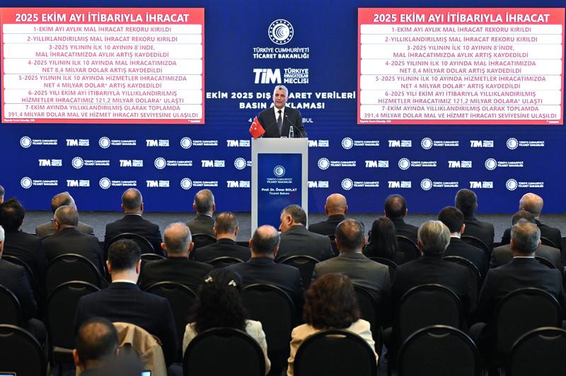 Ekim ayı dış ticaret verilerine ilişkin basın toplantısı düzenleyen Bakan Bolat, hem aylık hem yıllık mal ihracatında rekor kırıldığını belirterek, 'En yüksek ekim ayı ihracatı gerçekleşirken son on iki aylık ihracatta 270,2 milyar dolara ulaşarak yeni bir rekora daha imza attık.' dedi.