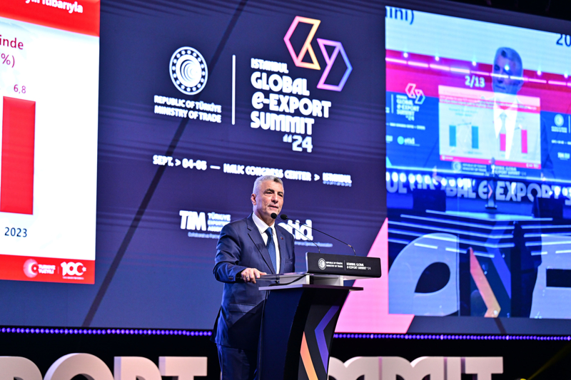 "Türkiye'de de e-ticaretin, toplam ticaret içindeki payı 2019'da yüzde 4,8 iken, 2023 sonunda yüzde 21'e yükselmiştir. Bunda salgının ticaret alışkanlıklarını değiştirmesinin çok önemli rolü oldu. Bu gelişmeler karşısında Bakanlık olarak hem hizmet ihracatına yönelik destek paketlerimiz bulunmakta hem de e-ihracata yönelik çok önemli destek ve teşvikler sağlamaktayız. E-ihracat ile firmalarımız uzak ve yabancı pazarlara daha kolay giriş yapabilmekte ve dünyanın her yerinden yüksek alım gücüne sahip müşterileri ulaşabilmekte, aracılar ve tedarikçiler olmaksızın yabancı ülkelerde kendi markalarını oluşturabilmekteler."
