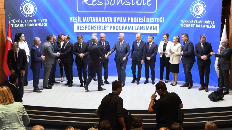 Ticaret Bakanı Bolat, Bakanlık Söğütözü Yerleşkesi'nde 'Yeşil Mutabakat Uyum Projesi-Responsible Programı Tanıtım Toplantısı'na katıldı. Bakan Bolat, Ticaret Bakanlığı'nın, Yeşil Mutabakat ve dünyadaki diğer gelişmelerin takibi ve atılabilecek adımların belirlenmesine yönelik çalışmalarda öncü rol oynadığını belirterek, "Yeşil Mutabakat'ın açıklanmasının hemen ardından Ticaret Bakanlığımız koordinasyonunda ilgili tüm bakanlık ve kurumların katılımıyla bir Çalışma Grubu ihdas edilmiştir. Bu kapsamda, Gümrük Birliği ile sağlanan ekonomik entegrasyonun daha ileriye taşınması ve uluslararası ticaret düzeninde iklim değişikliği ile mücadele politikalarının olası etkilerine adaptasyonu sağlayacak bir yol haritası oluşturulması amacıyla Yeşil Mutabakat Eylem Planı oluşturulmuştur. Çevresel, sosyal, ekonomik dönüşümü kapsayan yalın üretim ile dijitalleşmeyle birlikte firmaları bekleyen ikiz dönüşüm süreci çok kapsamlı, detaylı ve bilinçli bir yaklaşımı gerektirmektedir" dedi.