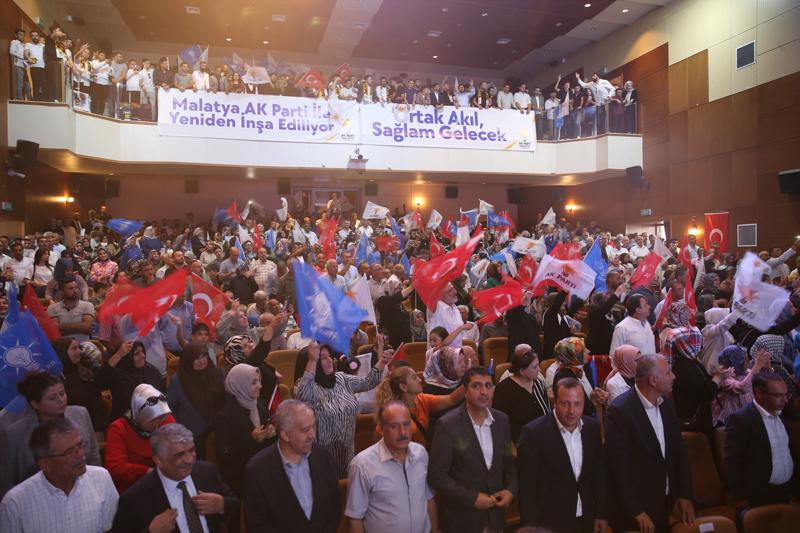 "81 il, 922 ilçemizdeki tüm teşkilatlarımızla, belediye başkanlarımızla, Anadolu'da her ilde, ilçede eser destanını sizler yazdınız. Şimdi Malatya'da ellerimizi yeniden birleştiriyor, Türkiye'nin güçlü devrini başlatıyor, Türkiye Yüzyılı'nı başlatıyoruz. 2028 seçimlerine kadar çok çalışacağız ve yine başaracağız. İstikbal için başaracağız. Ülkemiz için başaracağız. Milletimiz için başaracağız. Recep Tayyip Erdoğan için başaracağız. Gençlerimiz için başaracağız. Çocuklarımız için başaracağız."