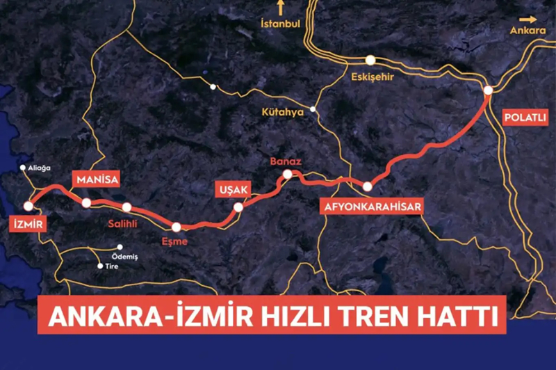 "Ankara-İzmir Yüksek Hızlı Tren hattında yakın zamanda elektrifikasyon ve sinyalizasyon gibi üstyapı işlerinde de çalışmalara başlayacağız. Hattın, TCDD Genel Müdürlüğü tarafından inşa edilen Banaz-Eşme, Eşme-Salihli ve Salihli-Manisa olmak üzere 180 kilometrelik kesimindeki altyapı işlerinin yüzde 63'lük fiziksel ilerlemesini de gerçekleştirdik. Projemizin bir bölümünü 2026, tamamını ise 2027 yılında bitirmeyi hedefliyoruz. 508 kilometre uzunluğundaki proje kapsamında; Emirdağ, Afyonkarahisar, Uşak, Alaşehir, Salihli, Manisa, Muradiye, Ayvacık, Emiralem ve Menemen İstasyonları olacak şekilde 10 istasyon tasarladık. 40,7 kilometre uzunluğunda 49 tünel, 25,5 kilometre uzunluğunda 67 viyadük, 81 köprü, 781 menfez ve 177 üstgeçit ile 244 altgeçit inşa ediyoruz. Ankara-İzmir Hızlı Tren Projesi'nin tamamlanması ile mevcut demiryolu bağlantısıyla 824 kilometre olan mesafe 624 kilometreye inecek. Ankara-İzmir arası 14 saat olan seyahat süresi ise 3 saat 30 dakikaya inecek."