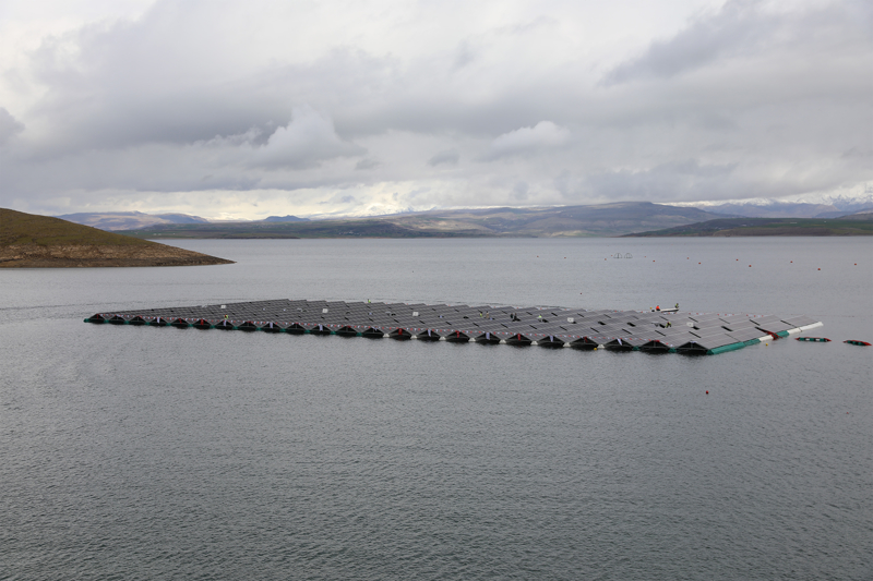 "Sulama projeleri için özellikle şu an içinde bulunduğumuz alanı düşündüğümüzde baraj ile sulanacak olan alanların arasındaki kot sebebiyle bu sulamaların pompaj sistemiyle yani bir enerjiyle yapılması gerekiyor. Bu da yaklaşık yüzde 40'lık bir ilave maliyet demektir. Arkadaşlarımız bununla ilgili bir AR-GE çalışması başlattı. Türkiye'de su rezervuarlarının üzerinde güneş enerjisi sistemi kurulumu daha önce bir kaç kez küçük çaplı yapılmış. Ancak sisteme elektrik verecek hale gelmemiş. Bulunduğumuz alan AR-GE çalışması neticesinde sisteme elektrik verecek hale getirilmiş. 1 megavatlık bir elektriği sisteme vererek karadaki 2 megavatlık güneş enerjisi sisteminin de entegre olarak bu alandaki sulamanın yaklaşık yarısının enerjisini sağlar duruma gelmiştir."