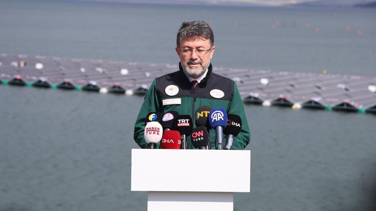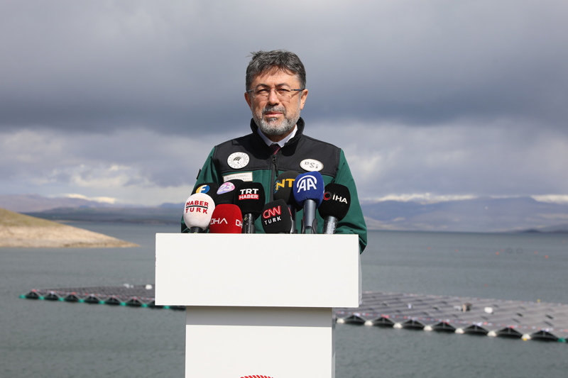 Bakan Yumaklı, merkeze bağlı Fatmalı köyü Beşevler mezrası mevkisinde Keban Barajı'nda inşa edilen Türkiye'nin ilk yüzer güneş enerjisi santralinde (GES) incelemelerde bulunarak, yetkililerden bilgi aldı.