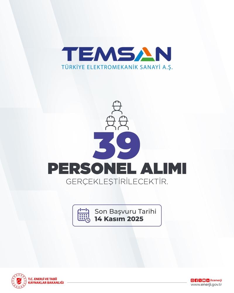 Boru Hatları İle Petrol Taşıma AŞ (BOTAŞ) ve Türkiye Elektromekanik Sanayi AŞ (TEMSAN) 262 personel istihdam edecek.