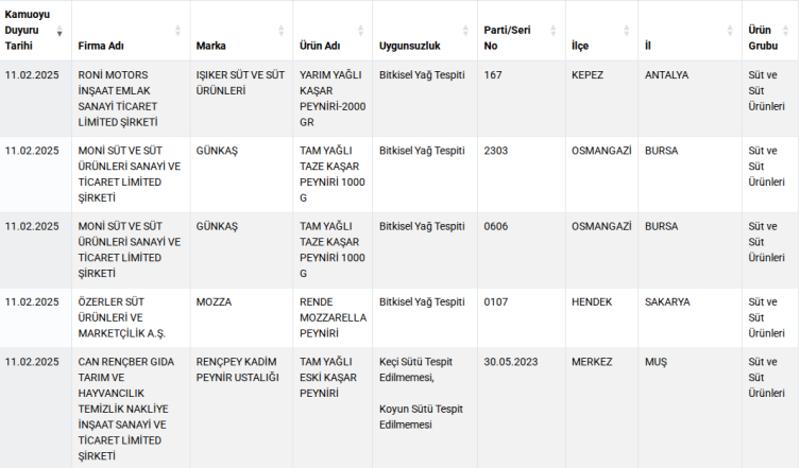 "guvenilirgida.tarimorman.gov.tr" adresinden paylaşılan listede gıdada hile yapan firmalar ve ürünleri tek tek açıklanıyor.