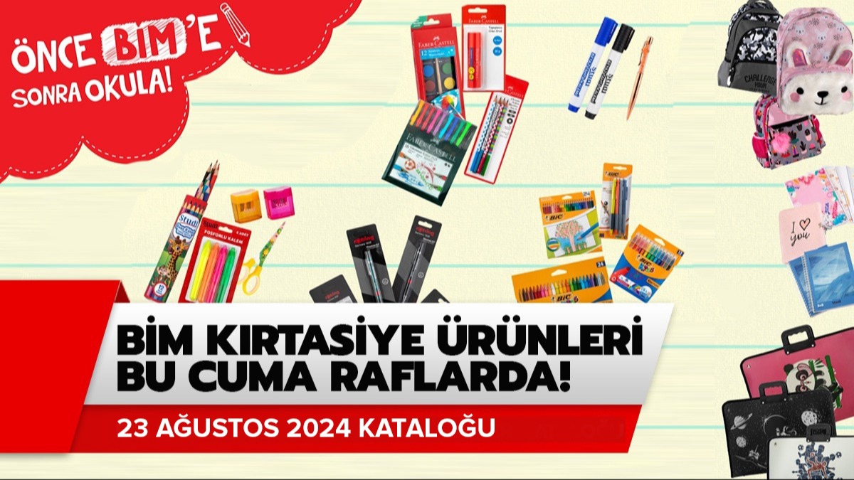 BİM'in bu hafta Cuma günü için hazırlanan aktüel ürünler kataloğunda kırtasiye malzemeleri var. BİM'de bu hafta okulların açılacak olmasıyla birlikte kırtasiye ürünleri yer alıyor. BİM aktüel ürünler kataloğunda bu cuma kalem, boya, kalemlik ve defter gibi kırtasiye ürünlerinde indirim fırsatları yer alıyor. Peki BİM'e bu hafta başka neler gelecek? İşte BİM 23 Ağustos 2024 aktüel ürünler kataloğu