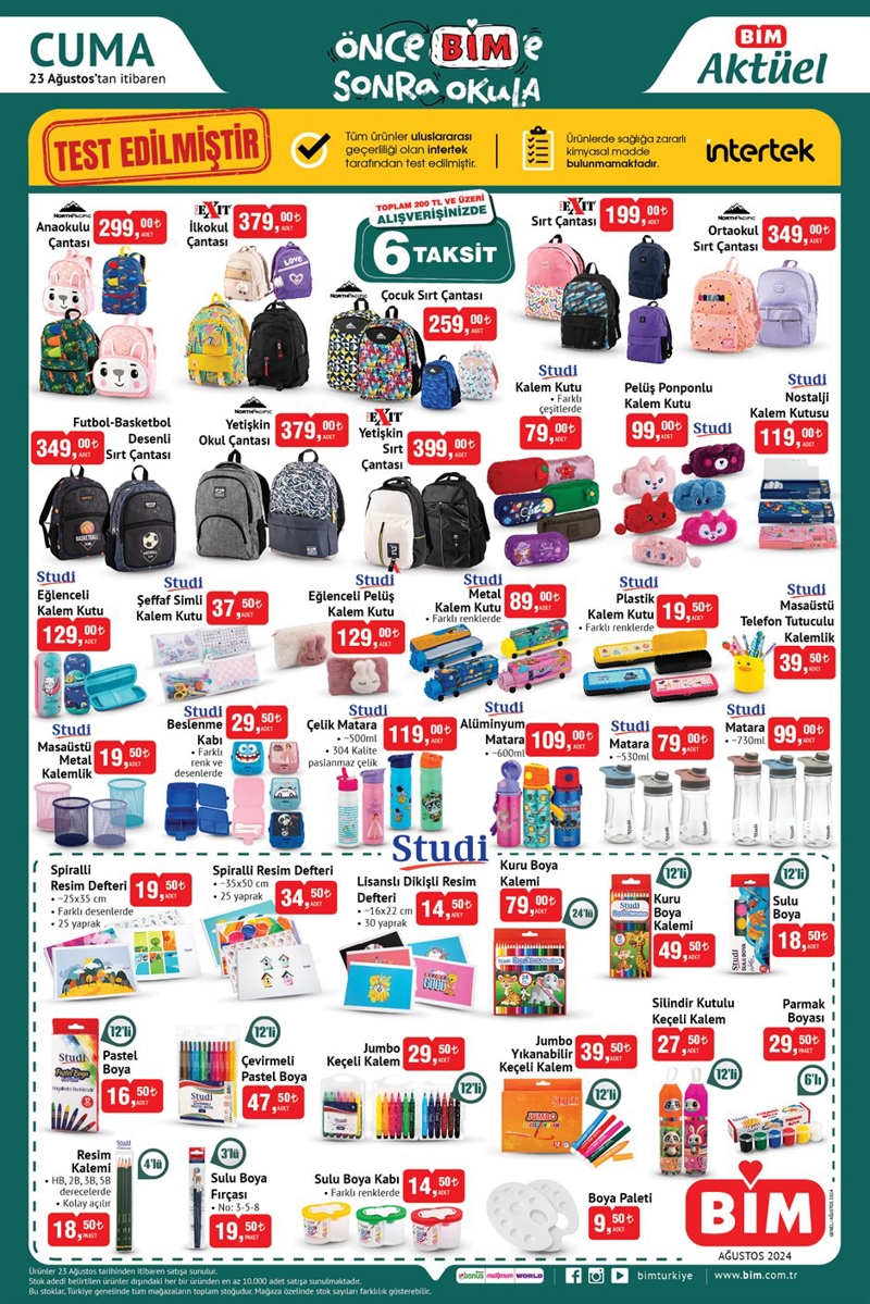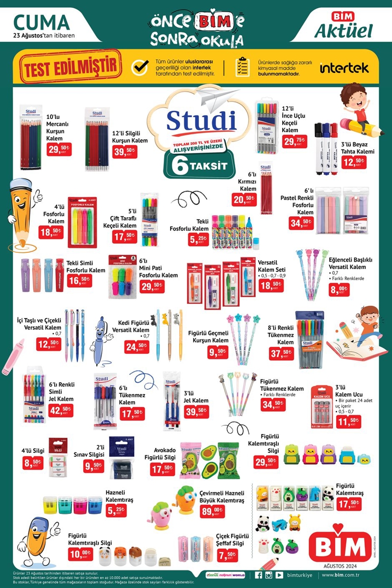 BİM 23 Ağustos 2024 aktüel ürünler kataloğunda okul öncesi öğrenciler için ihtiyaç olacak kırtasiye ürünleri uygun fiyattan satışa sunuldu.