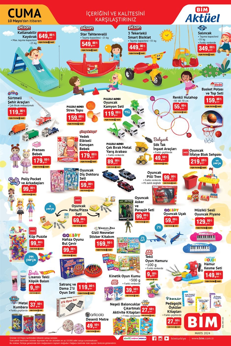 BİM 10 Mayıs 2024 aktüel ürünler kataloğu yayınlandı. BİM'de bu hafta; Anneler Günü için hazırlanmış hediyelik ürünler yer alıyor. Ayrıca; Bisikletlerden elektronik ürünlere, ev gereçlerinden oyuncaklara, tadilat gereçlerinden dekorasyona varana kadar onlarca çeşit üründe kaçırılmaz fırsatlar yer alıyor. Peki BİM'de bu hafta başka neler var? İşte BİM 10 Mayıs 2024 aktüel ürünler kataloğu