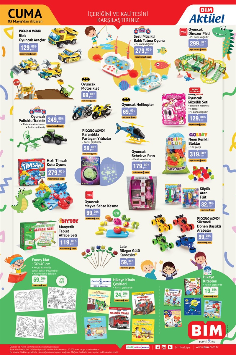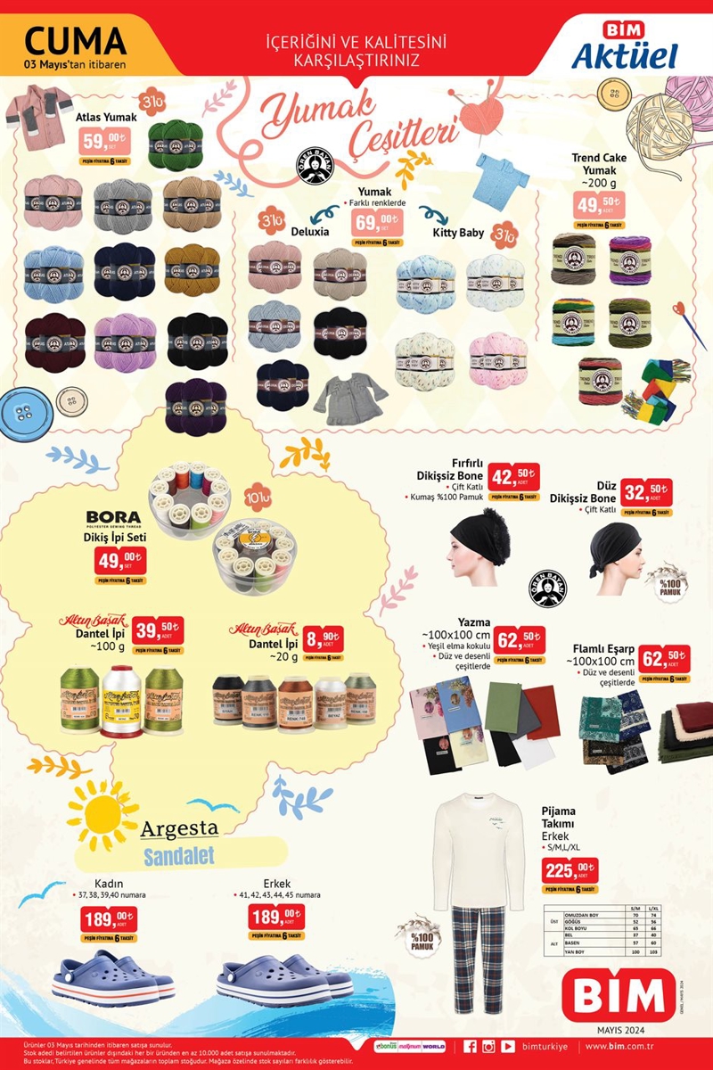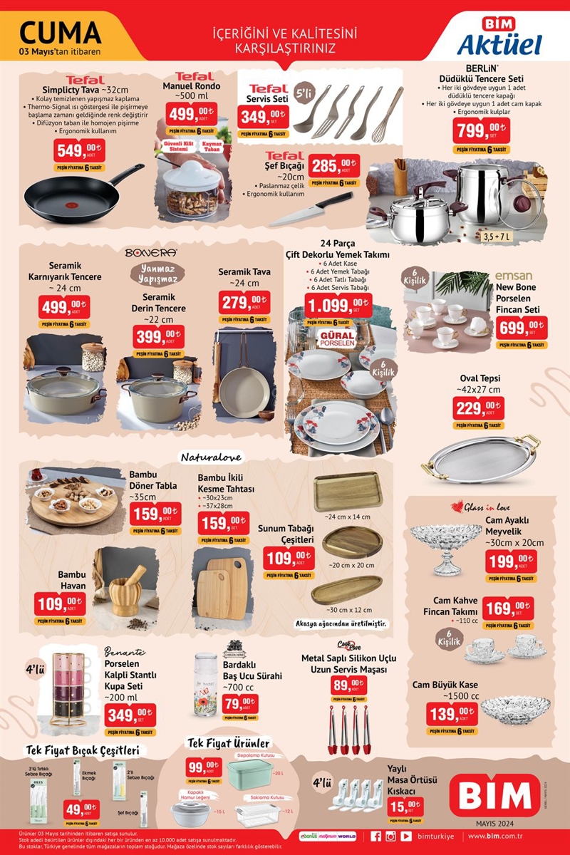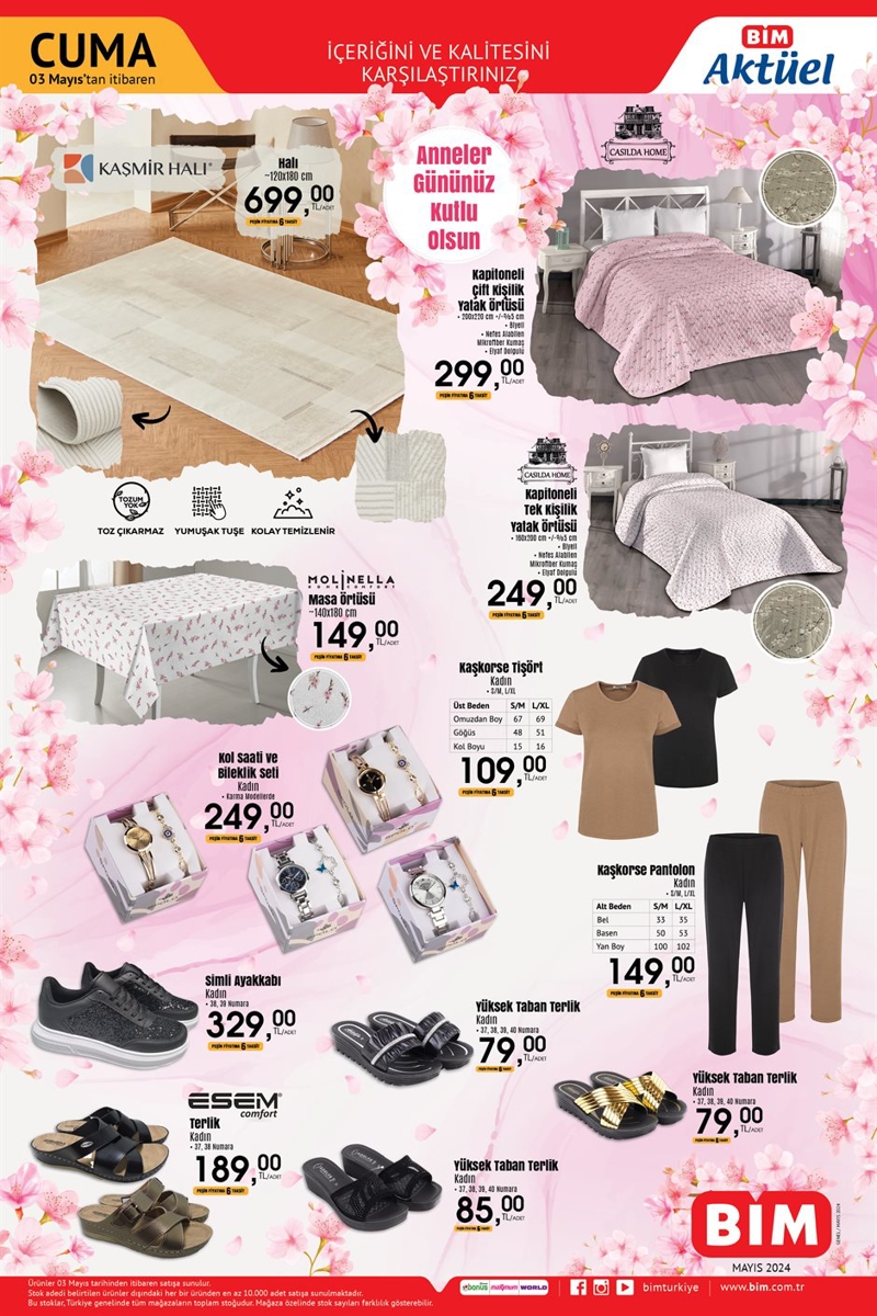 BİM 3 Msyıs 2024 aktüel ürünler kataloğu yayınlandı. BİM'de bu hafta; Anneler Günü için hazırlanmış hediyelik ürünler yer alıyor. Ayrıca; Örgü malzemelerinden elektronik ürünlere, ev gereçlerinden oyuncaklara, bahçe ürünlerinden dekorasyona varana kadar onlarca çeşit üründe kaçırılmaz fırsatlar yer alıyor. Peki BİM'de bu hafta başka neler var? İşte BİM 3 Mayıs 2024 aktüel ürünler kataloğu