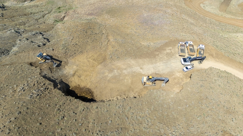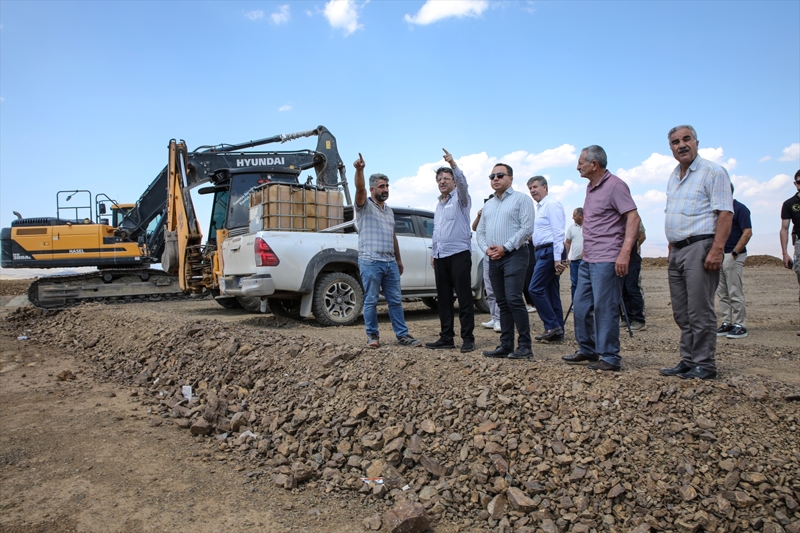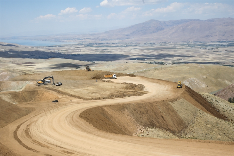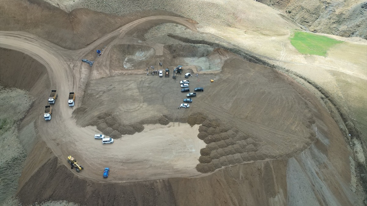 İlçeye 25 kilometre uzaklıktaki Beşparmak Mahallesi'nde 2 bin 300 rakımlı dağın eteğinde yürütülen çalışmada, iş makineleriyle yol inşası ve zemin etütleri yapılıyor.