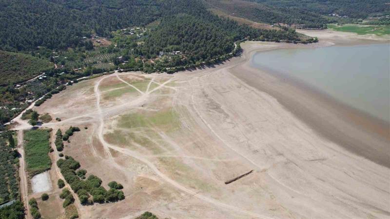 Bursa'nın şeftali, armut, siyah incir ve kiraz gibi önemli tarım ürünlerinin üretildiği tarım alanlarının sulanmasında önemli rol üstlenen Gölbaşı göletinin, aralık ayında olunmasına rağmen içler acısı hali tedirgin ediyor.