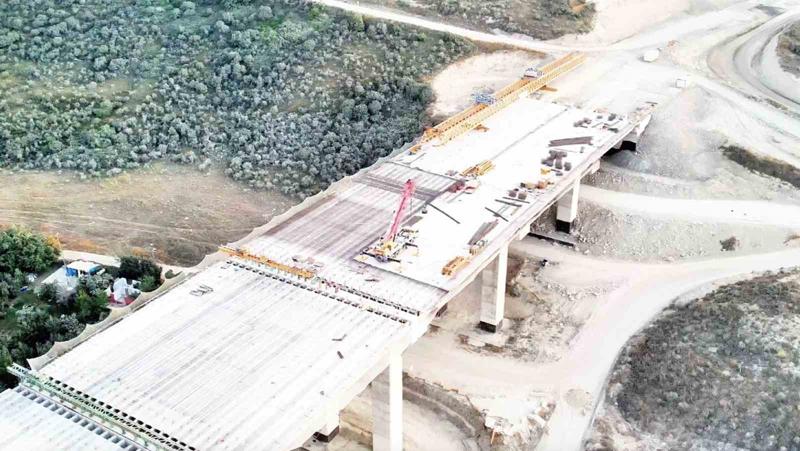 İstanbul için 'çılgın proje' olarak belirtilen Kanal İstanbul'daki en önemli köprülerden birisi olan Sazlıdere Köprüsü'nde çalışmaları devam ediyor. Başakşehir, Kayaşehir ve Bahçeşehir bölgeleri arasında kritik bir ulaşım aksı oluşturacak köprüde, 24 şeritli yolun beton bloklarının yerleştirildiği görüldü. Bağlantı elemanlarının konulmaya başlandığı ve yol platformunun gözle görülür şekilde şekillendiği drone görüntülerine yansıdı.