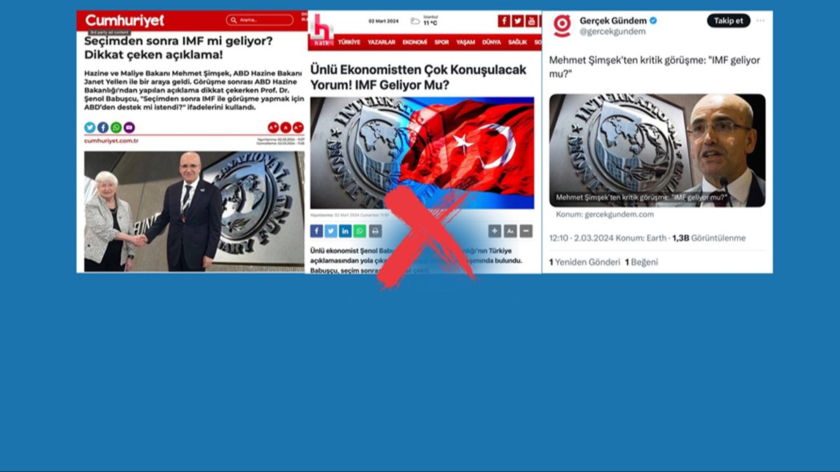 Bazı basın yayın organları ve sosyal medya hesaplarından paylaşılan, "Seçimden sonra IMF ile görüşme yapmak için ABD'den destek istendiği" yönündeki iddialar doğru değildir.