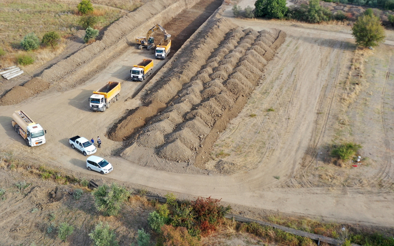 Tesislerin kurulacağı alanda altyapının yanı sıra iş makineleriyle tesviye çalışmaları yapılırken, bir yandan da bölgeye ulaşım için yeni yol güzergahları oluşturuluyor.