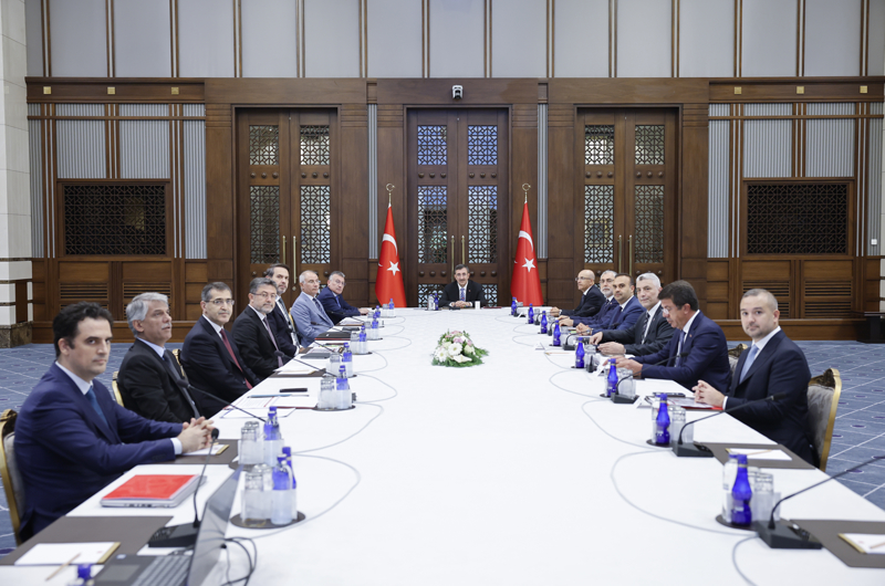 Cumhurbaşkanlığı Külliyesi'ndeki toplantıya, Çalışma ve Sosyal Güvenlik Bakanı Vedat Işıkhan, Enerji ve Tabii Kaynaklar Bakanı Alparslan Bayraktar, Hazine ve Maliye Bakanı Mehmet Şimşek, Sanayi ve Teknoloji Bakanı Mehmet Fatih Kacır, Tarım ve Orman Bakanı İbrahim Yumaklı, Ticaret Bakanı Ömer Bolat, AK Parti Grup Başkanı Abdullah Güler, Genel Başkanvekili Efkan Ala, Genel Başkan Yardımcısı Nihat Zeybekci, Cumhurbaşkanlığı Strateji ve Bütçe Başkanı İbrahim Şenel, Türkiye Cumhuriyet Merkez Bankası (TCMB) Başkanı Fatih Karahan ile ilgili kurum ve kuruluşların temsilcileri katıldı.