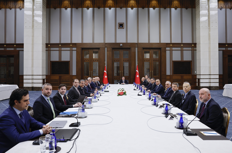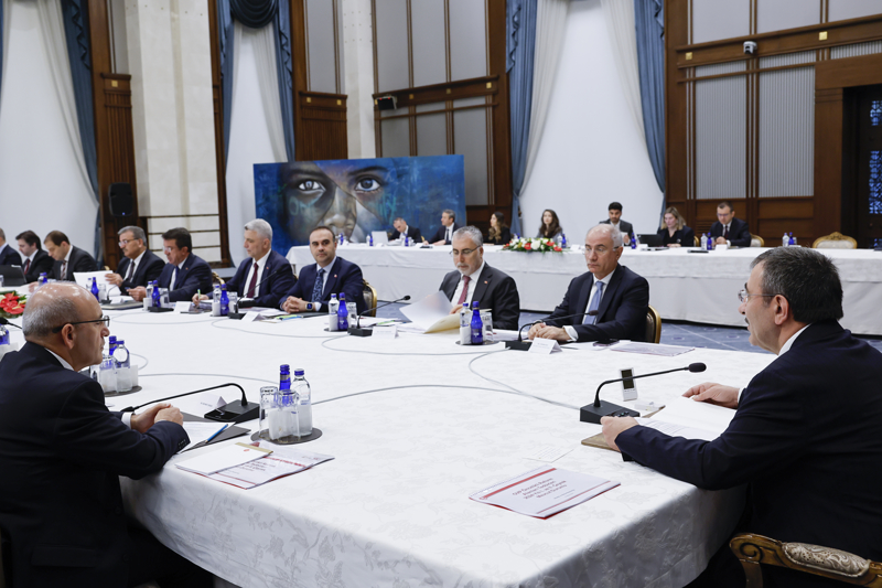 Cumhurbaşkanlığı Külliyesi'ndeki toplantıya, Çalışma ve Sosyal Güvenlik Bakanı Vedat Işıkhan, Enerji ve Tabii Kaynaklar Bakanı Alparslan Bayraktar, Hazine ve Maliye Bakanı Mehmet Şimşek, Sanayi ve Teknoloji Bakanı Mehmet Fatih Kacır, Tarım ve Orman Bakanı İbrahim Yumaklı, Ticaret Bakanı Ömer Bolat, AK Parti Genel Başkanvekili Efkan Ala, Genel Başkan Yardımcısı Nihat Zeybekci, Cumhurbaşkanlığı Strateji ve Bütçe Başkanı İbrahim Şenel, Merkez Bankası Başkanı Fatih Karahan ile ilgili kurum ve kuruluşların temsilcileri katıldı.