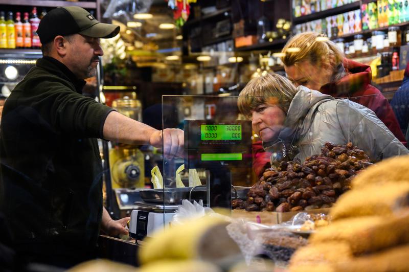 Kahve, şeker, lokum, kuruyemiş, çikolata ve kahvaltılıkların satıldığı iş yerleri ve tezgahlarda sıra oluştu.
