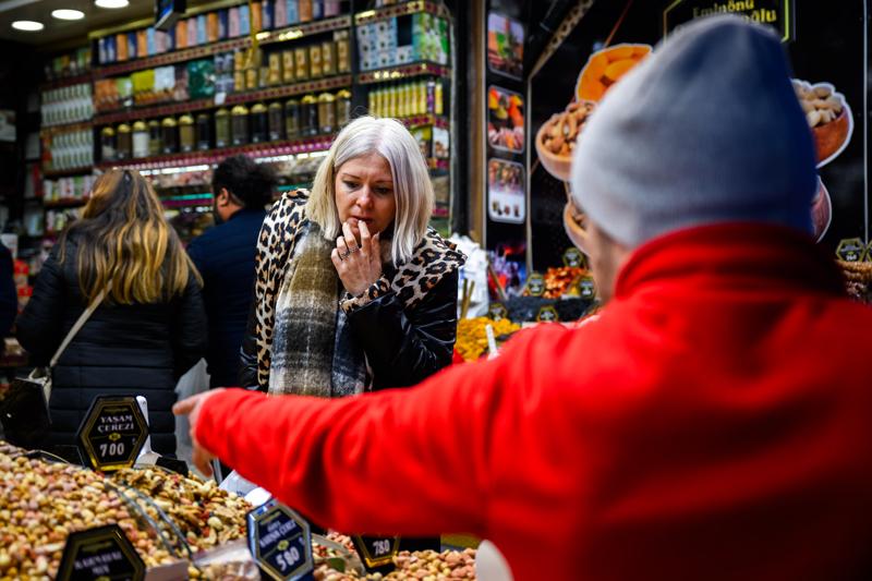 Ziyaretçilerden Hacer Kaplan, kahve ve torunlarına bayram şekeri aldığını belirterek, "Hava soğuk, Eminönü kalabalık. Bayramda gezeceğiz, iki torunum bana gelecek. Onlara çikolata ve şeker aldım." dedi.