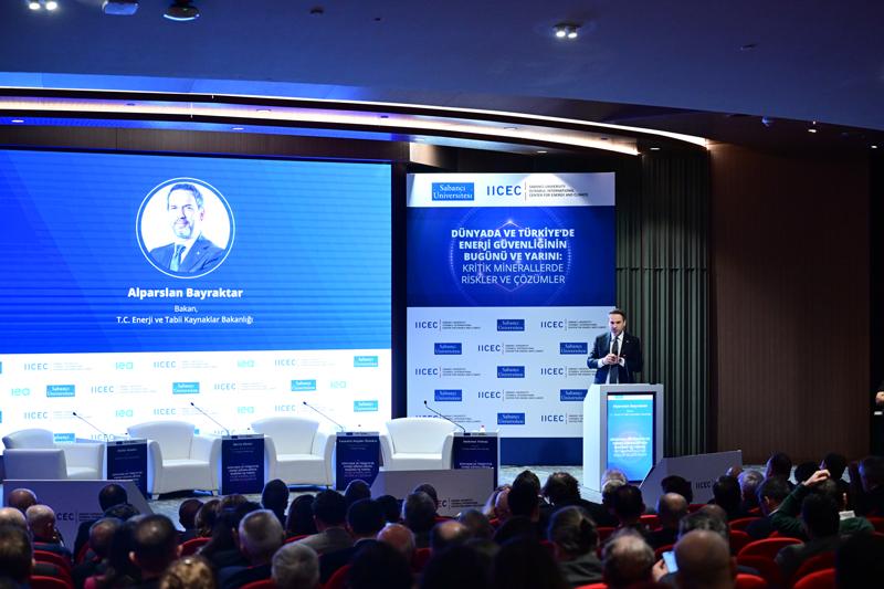 Enerji ve Tabii Kaynaklar Bakanı Alparslan Bayraktar, Sabancı Üniversitesi İstanbul Uluslararası Enerji ve İklim Merkezinin (IICEC) "Dünyada ve Türkiye'de Enerji Güvenliğinin Bugünü ve Yarını: Kritik Minerallerde Riskler ve Çözümler" temasıyla Sabancı Center'da düzenlediği IICEC Konferansı'nda, Türkiye'nin elektrik talebinin 2055'te en muhafazakar tahminle 3 katına çıkacağını, bu talebin yerli ve yenilenebilir kaynaklarla karşılanmasının hedeflendiğini söyledi.