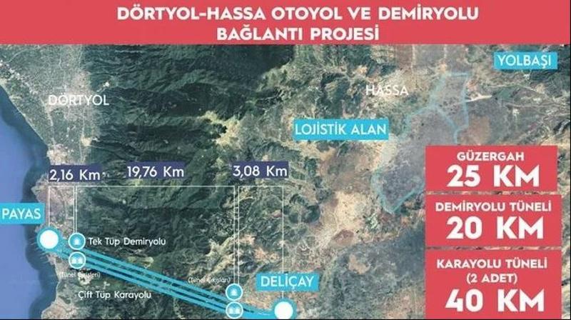 Hatay ve Gaziantep'in dört gözle beklediği "Dörtyol Hassa Demiryolu ve Otoyolu Projesi'nin ihalesi Ulaştırma Bakanlığı Altyapı Yatırımları Genel Müdürlüğü tarafından yapıldı. İhaleyi en düşük teklif veren firma kazandı. Projede daha önce sadece çift şeritli karayolu olarak planlanan tünel projesine tek hatlı bir demiryolu da eklendi. Proje kapsamında 2'si karayolu, biri de demiryolu olmak üzere 20'şer kilometre uzunluğunda 3 tünel inşa edilecek. Projeyle ilgili bilgi veren Ulaştırma ve Altyapı Bakanı Abdulkadir Uraloğlu, 6 Şubat'ta meydana gelen depremlerden sonra bölgede en acil altyapı ihtiyaçlarından birisinin ulaşım olduğunu belirterek, "Proje kapsamında 25 kilometrelik güzergâhta, bir demiryolu tünelinin uzunluğu 20 kilometre, 2x2 şeritli olacak olan 2 otoyol tünelinin uzunluğu ise 40 kilometredir. Tünelin 3 farklı tüpten oluşması ve boylarının da 20'şer kilometre olması planlanmıştır. İki etaptan oluşacak projede, tünel yapımını kapsayan ilk etabı Hassa kavşağında sona erecek. Karayolu bağlantısı ise Toprakkale-İskenderun Otoyolu'ndan ayrılarak Dörtyol kavşağından Amanos Dağları altından geçerek Hassa üzerinden Kırıkhan- Nurdağı arası var olan karayolu ile birleşecek" dedi.