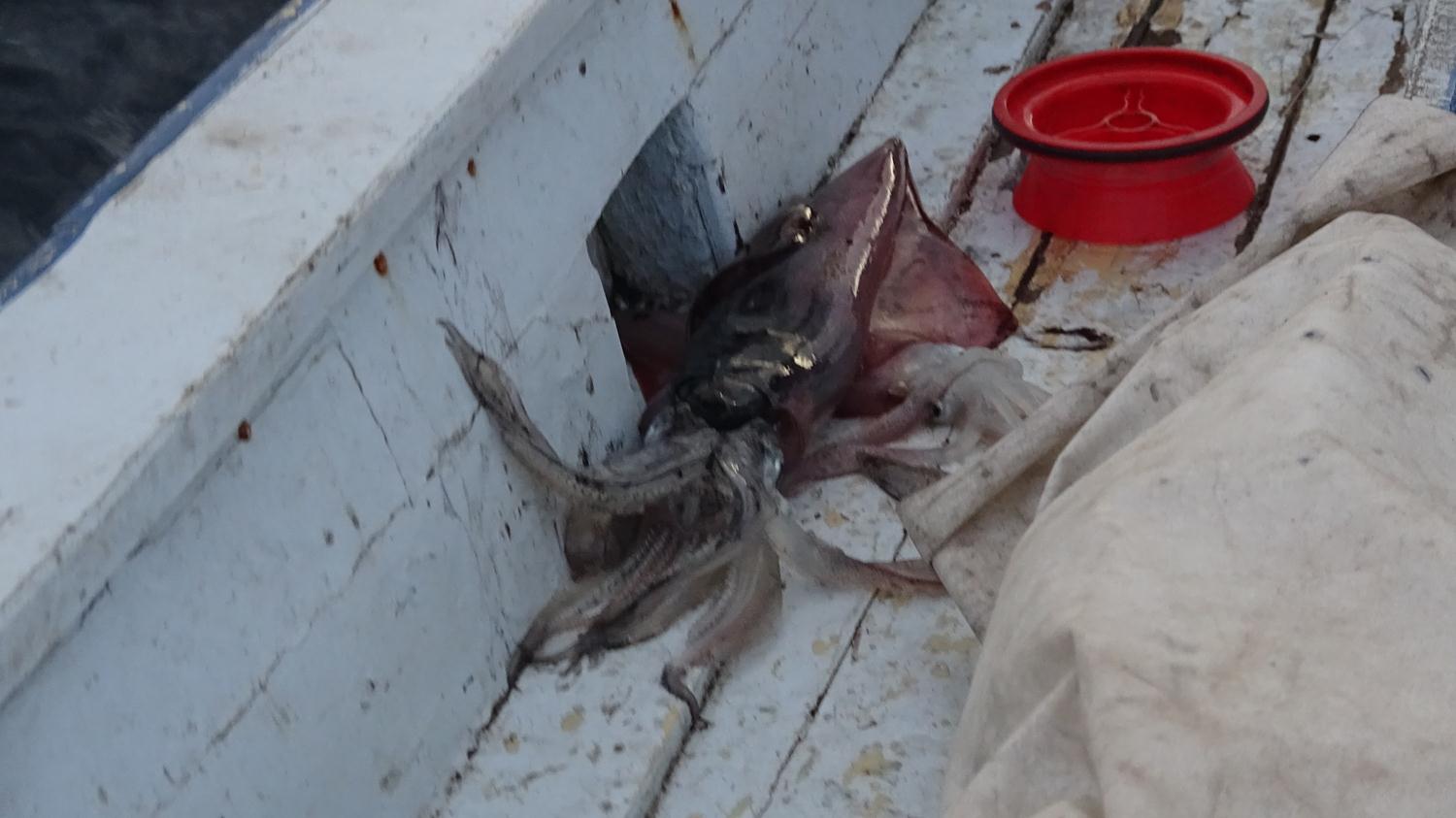 Ada sakinlerinden Ferdi Güneş ise, kalamarın karidese benzeyen ve ucunda çoklu kalamar oltası bulunan sahte yemle yakalandığını söyledi.